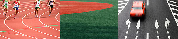 陸上競技場、グラウンド、遊歩道などの舗装充填材
