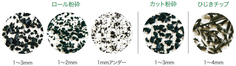 従来、燃料として流通していた廃タイヤを原料にし、真のリサイクル理念にかなった高品質な再生ゴムマテリアルをお届けします。